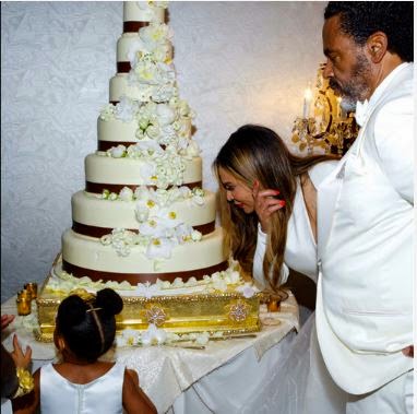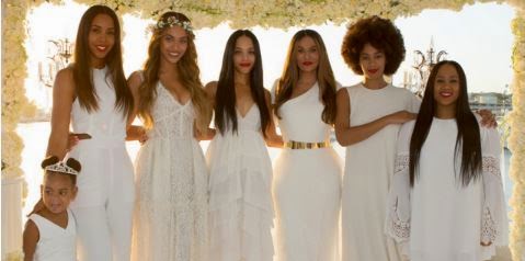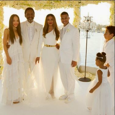 Deniece Lawson (Pictured Starting with Blue 4th from the left)is now officially family now that Beyoncé and Solange’s mother Tina tied the knot with Deniece’s dad Richard Lawson a few weeks back. Click Read More to see more exclusive pics from the wedding.