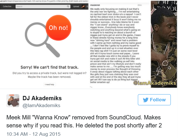 Rapper Meek Mill has bowed out of the Beef with Hip Hop’s Prince Drizzy Drake. Meek started by removing his unintelligible miss “I Wanna Know”.