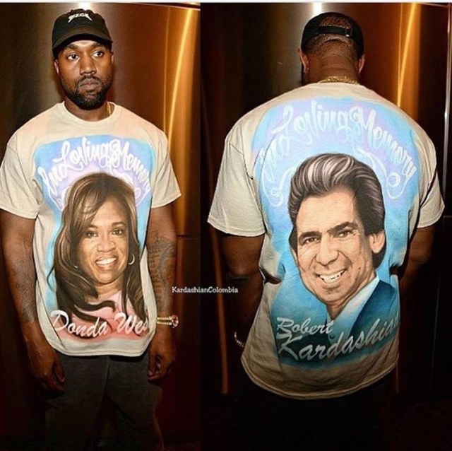 Earlier today Kanye Showed homage by donning a shirt with both his Deceased Mother “Donda West” and Deceased Father In Law “Robert Kardashian”.