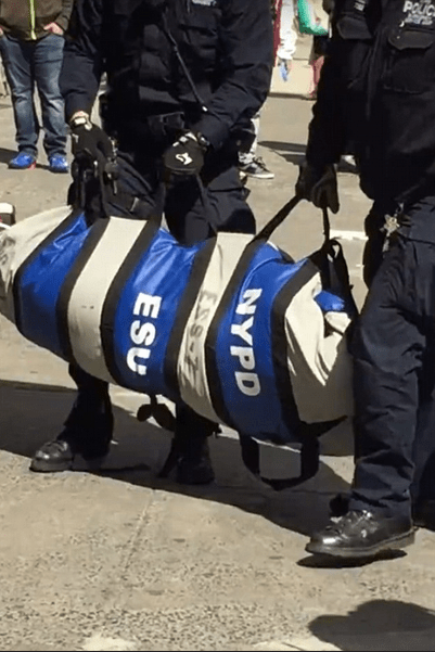 It was not immediately clear what happened to cause cops to restrain the man, but an NYPD spokesman said cops use the burrito-type bag “when an EDP is violent and may cause harm to themselves or others.” The sack has vents and allows for breathing, the spokesman said.