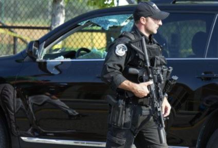 The gunman, described as a white male in his 40s, fired as many as 50-60 rifle rounds before Capitol police shot and wounded him. A witness said the gunman and Capitol police exchanged gunfire for 15 minutes. Someone in the dugout was heard yelling “Just shoot him!”
